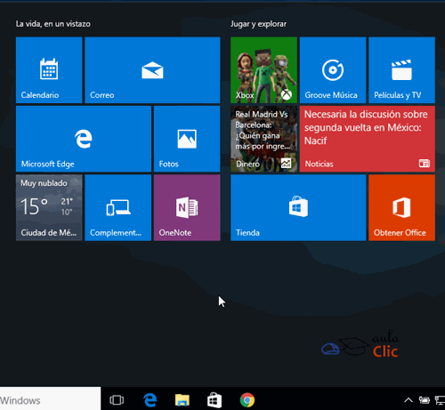 Vayamos ahora a la parte derecha de nuestro menú Inicio. Decíamos que es la parte de la interfaz UI (también conocida como Metro) de Windows 8. Consiste en un grupo de grandes recuadros que pueden representar programas o archivos y que fue diseñada fundamentalmente para ser usada en dispositivos táctiles. En las opciones de configuración de Windows también se les denomina como iconos, por lo que en el curso les llamaremos indistintamente iconos, "tiles" o recuadros, según nos convenga en el contexto del tema.
