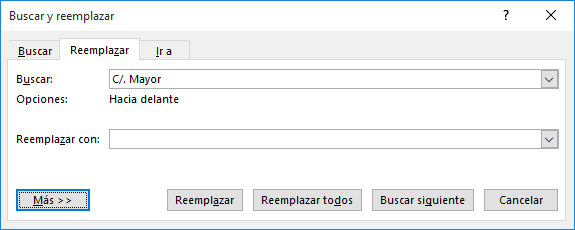 lo que queremos hacer es reemplazar una palabra por otra tenemos que utilizar el botón Reemplazar
