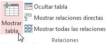 Si ya hemos creado una relación y queremos crear otra pero no se dispone de la tabla en la ventana Relaciones debemos añadir la tabla a la ventana: