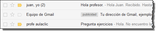 Cuando un mensaje tiene asignada una etiqueta, está aparece en la lista de mensajes para que podamos verla claramente. Por ejemplo, en la siguiente imagen, vemos como el segundo mensaje tiene la etiqueta de publicidad.