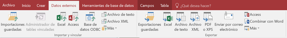 Como habrás podido observar en la pestaña Datos externos, existen otros métodos de importación de datos, podrás acceder a ellos haciendo clic en los diferentes botones de la sección Importar y Vincular.