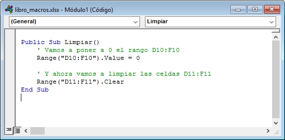 Empezaremos por crear una macro para poner a cero el contenido de ciertas celdas de nuestra hoja de trabajo.