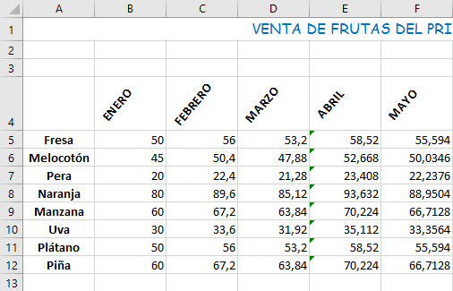 14. Selecciona el rango B4:L4.