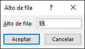 Aparecerá el cuadro de diálogo Alto de fila en el que tendrás que indicar el alto de la fila, para indicar decimales utilizar la coma ",".