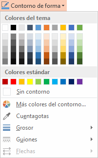 Sólo destacar que las formas de líneas y líneas con flecha se pueden modificar desde su Contorno de forma para que muestren una dirección distinta. Además, obviamente, este tipo de formas no permite la aplicación de un relleno.