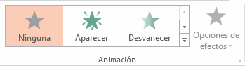 Para animar un texto u objeto lo primero que hay que hacer es seleccionarlo. A continuación, habrá que ir a la ficha Animaciones, grupo Animación y seleccionar cualquiera de las que se muestran.